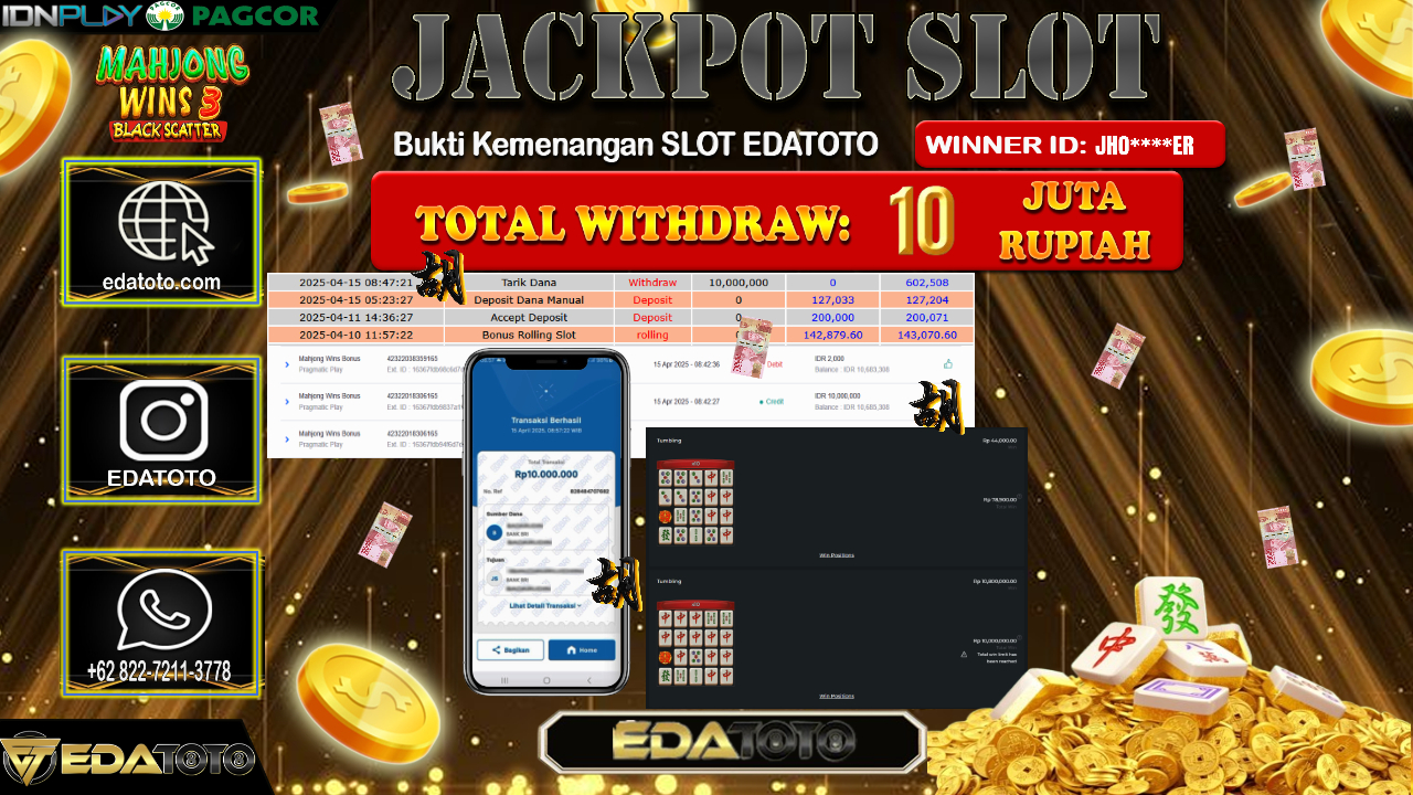 Selamat Kepada Pemilik user ID : JHO****ER Hari/Tanggal : Rabu / 16 , April 2025 Jackpot : Rp. 10.000.000 JT . . .
