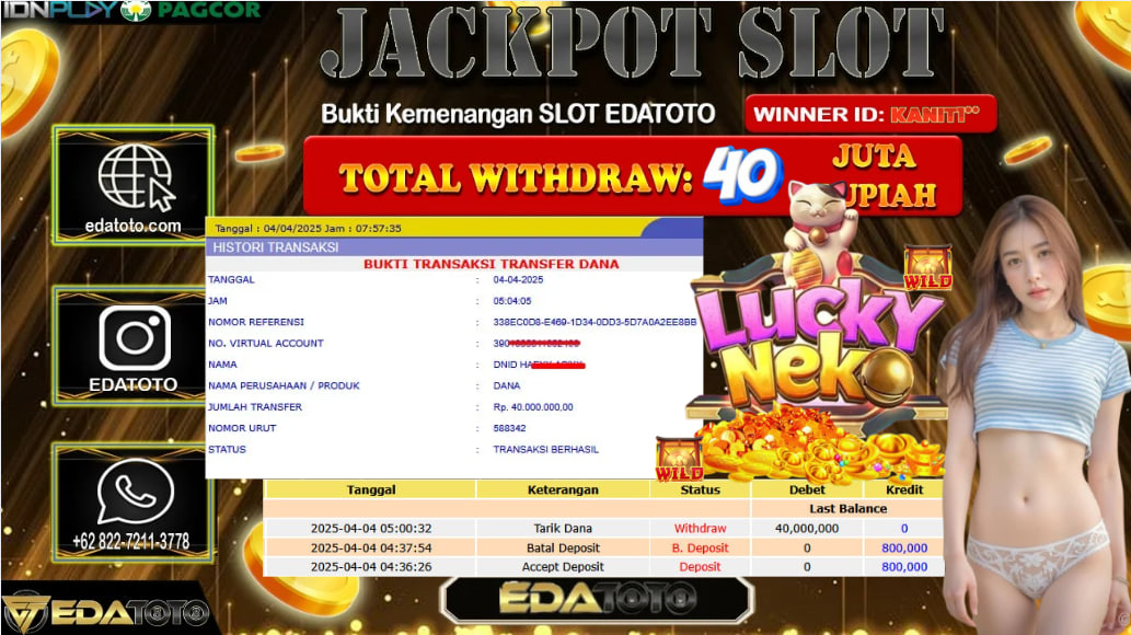 Selamat Kepada Pemilik user ID : kanit1** Hari/Tanggal : Sabtu / 4 , April 2025 Jackpot : Rp. 40.000.000 JT . . .