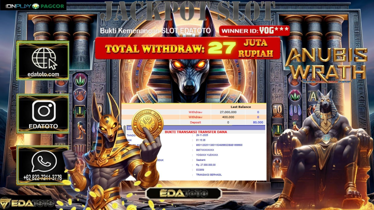 Selamat Kepada Pemilik user ID : YOG*** Hari/Tanggal :SABTU / 29, November 2025 Jackpot : Rp. 28,500,000 JT Withdraw :27,000,000 . . .